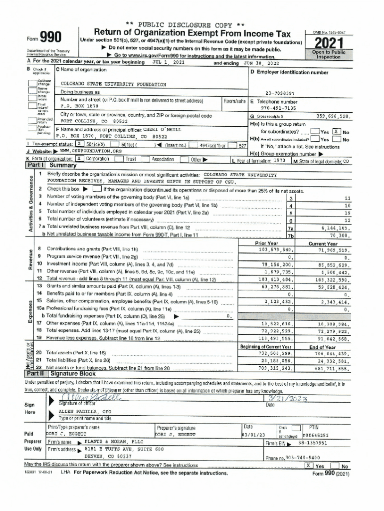 COLORADO STATE UNIVERSITY FOUNDATION Part III Statement of Program Service Accomplishments237098397Form 990 (2021)Check if Schedule O contains a response or note to any line in this Part III 12Briefly