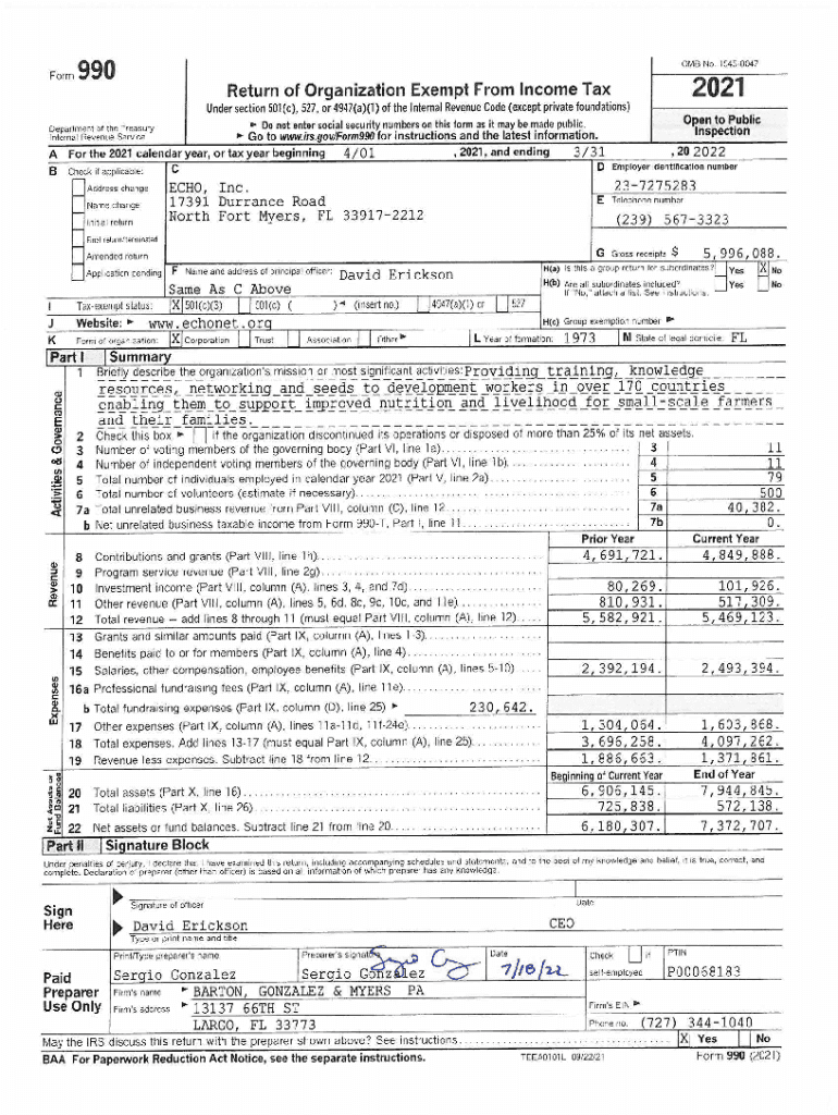 Get the free ECHO, Inc. E-filed and Accepted 3-31-22 Form 990 INTERNAL