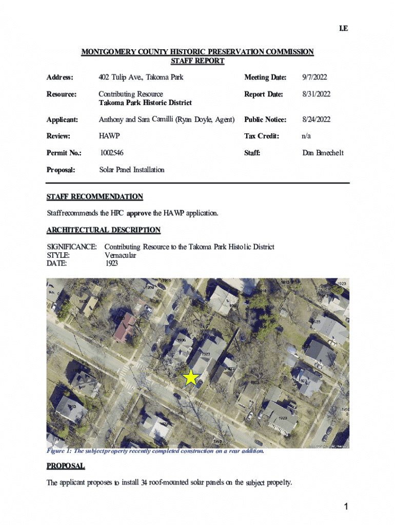 I. E MONTGOMERY COUNTY HISTORIC PRESERVATION COMMISSION STAFF REPORT Address:402 Tulip Ave., Tacoma Marketing Date:9/7/2022Resource:Contributing Resource Tacoma Park Historic DistrictReport Date:8/31/2022Applicant:Anthony