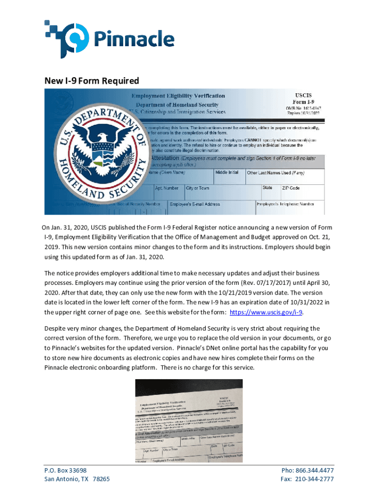 The new i-9 form is required to verify the identity and employment authorization of individuals hired for employment in the United States.