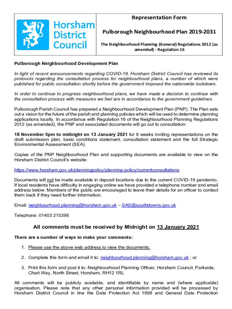 Representation Form Borough Neighborhood Plan 20192031 The Neighborhood Planning (General) Regulations 2012 (as amended) Regulation 16 Borough Neighborhood Development Plan In light of recent announcements