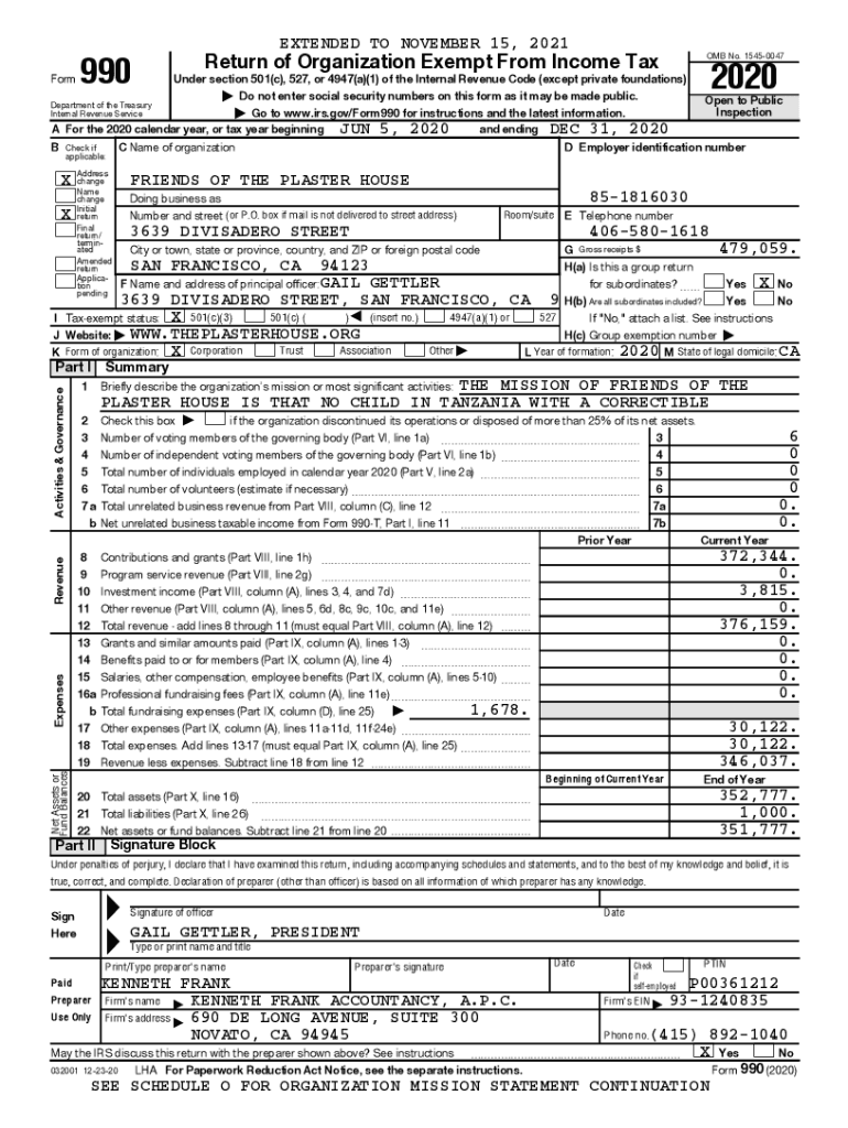 FormEXTENDED TO NOVEMBER 15, 2021990OMB No. 15450047Return of Organization Exempt From Income Thunder section 501(c), 527, or 4947(a)(1) of the Internal Revenue Code (except private foundations)