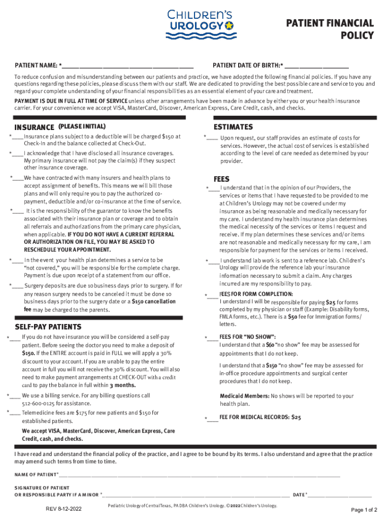 PATIENT NAME: *___PATIENT DATE OF BIRTH:* ___To reduce confusion and misunderstanding between our patients and practice, we have adopted the following financial policies. If you have any questions