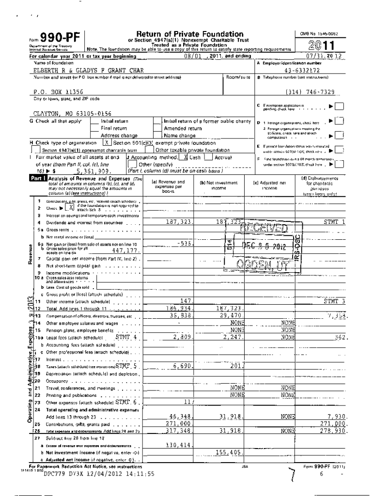 , IForm990PFDepartment of the Treasury Internal Revenue ServiceReturn of Private Foundation OMB No 15450052or Section 494 7(a)(1) Nonexempt Charitable Trust Treated as a Private Foundation Note. The