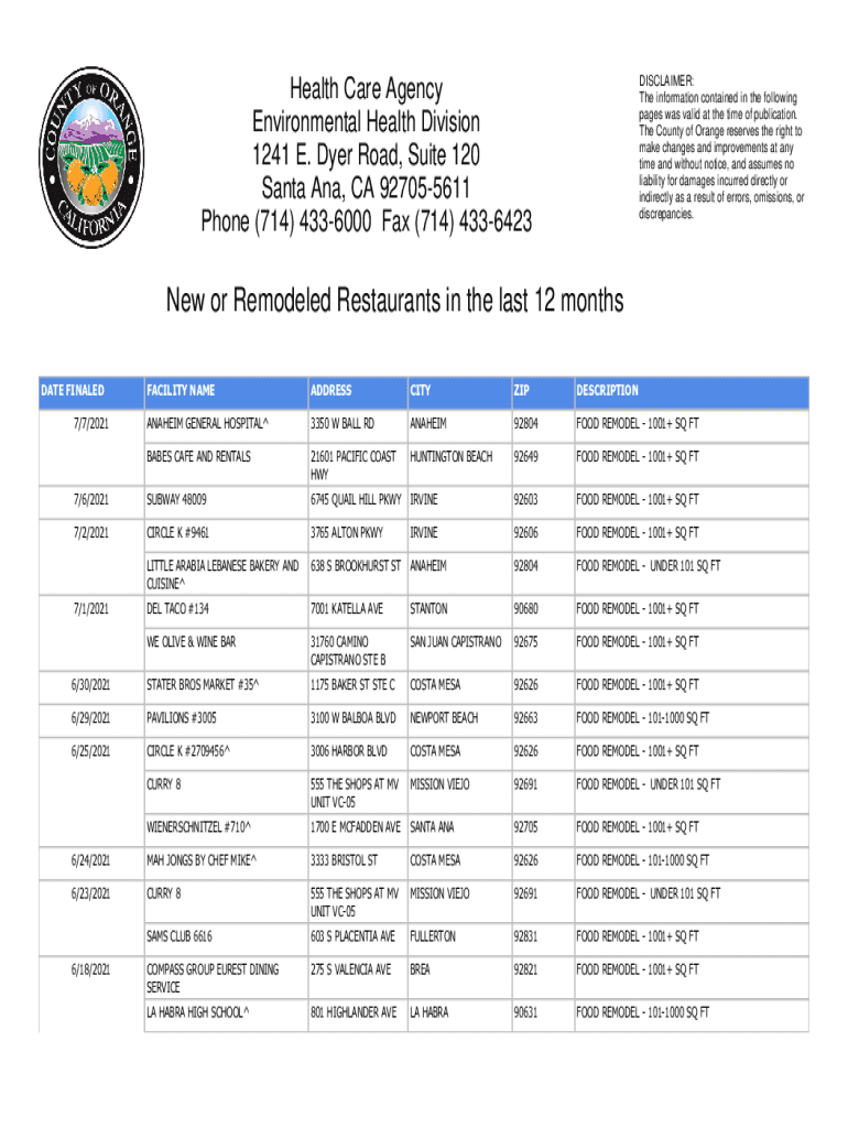 DISCLAIMER: The information contained in the following pages was valid at the time of publication. The County of Orange reserves the right to make changes and improvements at any time and without