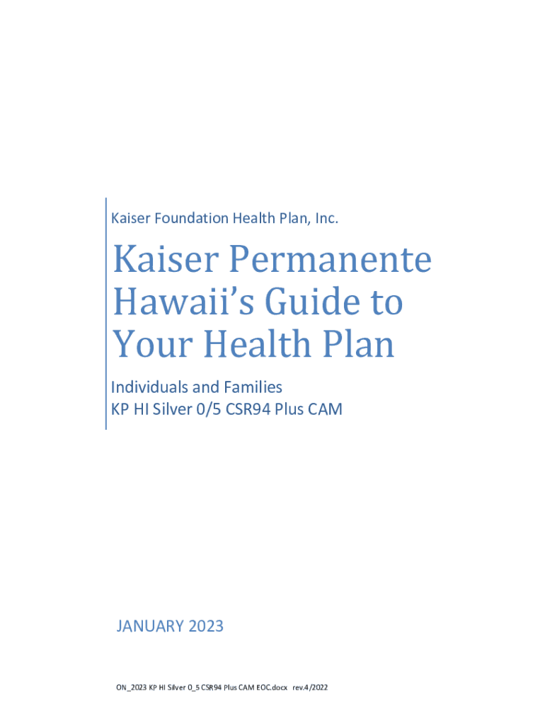 Kaiser Foundation Health Plan, Inc. Kaiser Permanent Hawaii's Guide to Your Health PlanIndividuals and Families KP HI Silver 0/5 CSR94 Plus JANUARY 2023 ON_2023 KP HI Silver 0_5 CSR94 Plus CAM EOC.docx