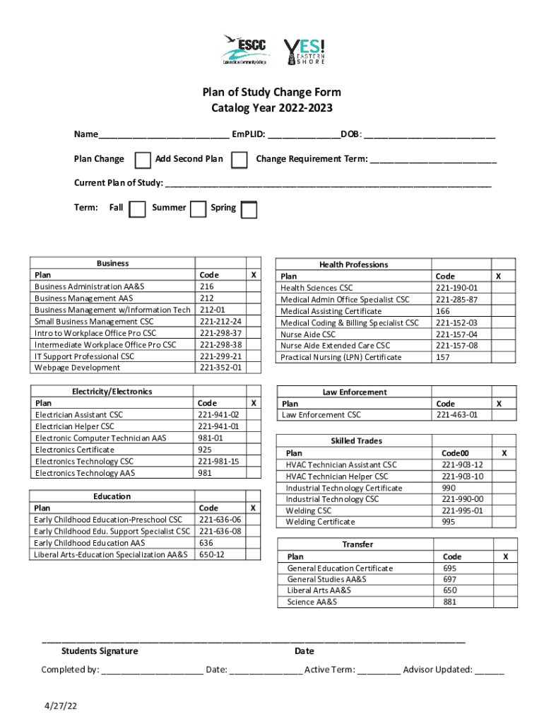 Plan Changed Second Blancmange Requirement Term: ___Current Plan of Study: ___