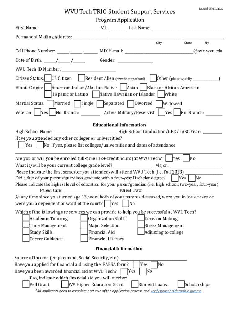 Students who are enrolled in the trio program are required to file tech-sssmailwvuedu trio student support.