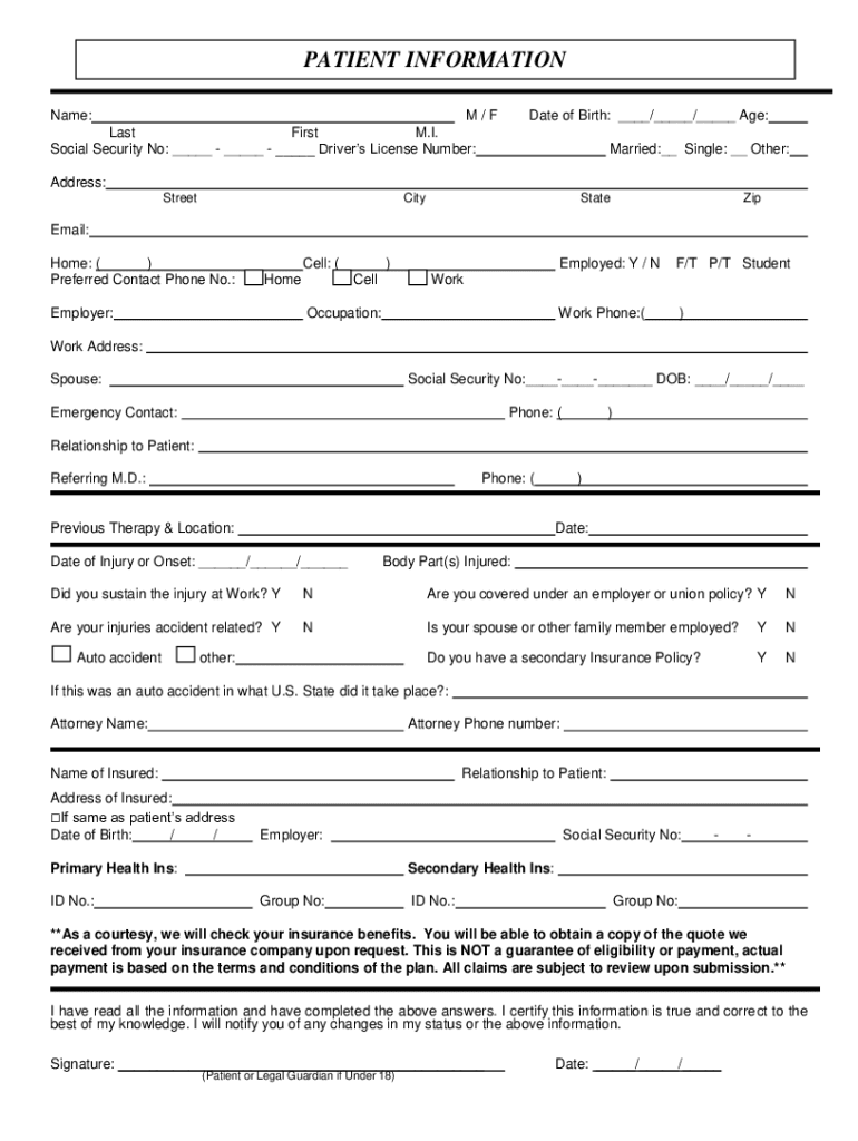 Social Security No: ___ ___ ___ Driver's License Number:Date of Birth: ___/___/___ Age:
