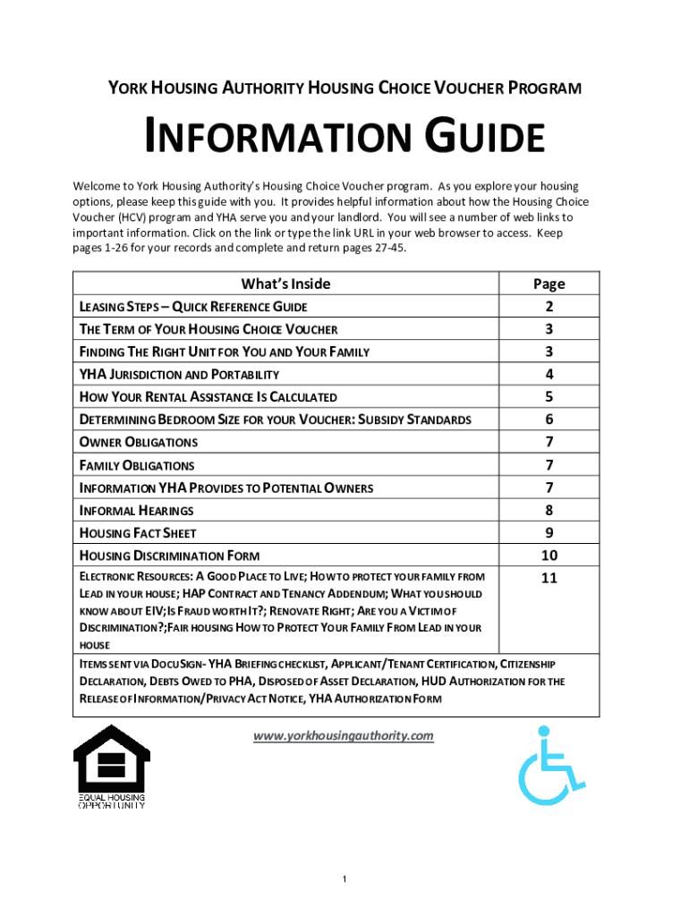 YORK HOUSING AUTHORITY HOUSING CHOICE VOUCHER PROGRAMINFORMATION GUIDE Welcome to York Housing Authorities Housing Choice Voucher program. As you explore your housing options, please keep this guide