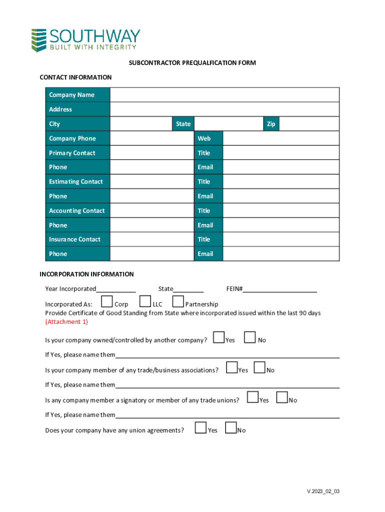 SUBCONTRACTOR PREQUALIFICATION FORM