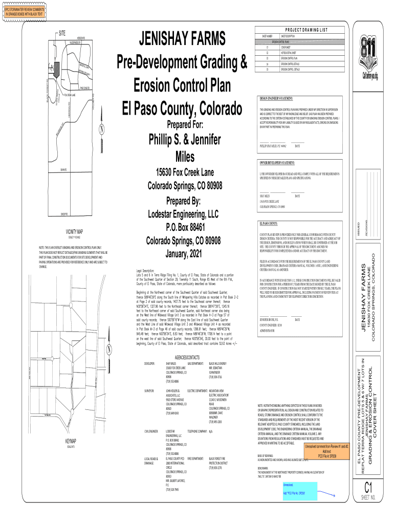 EPC STORMWATER REVIEW COMMENTS IN ORANGE BOXES WITH BLACK TEXTJENISHAY FARMS PreDevelopment Grading & Erosion Control Plan El Paso County, ColoradoAYHERRING FOX CREEK LANE DG RIRDVOLLMER RAPINE CONE