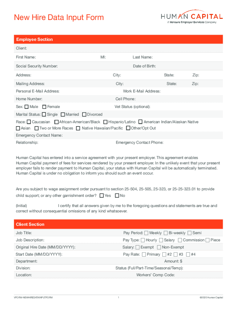 2020 New Hire Guidebook Hire Data Input Form Reset Form Employee Section Client: First Name:MI:Last Name:Social Security Number: Address:Date of Birth: City:Mailing Address:State:City:Personal Email
