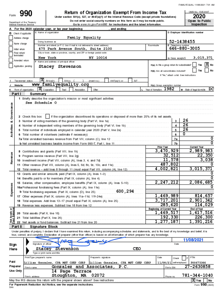 FAMILYEQUAL 11/08/2021 7:01 AMForm990Return of Organization Exempt From Income Department of the Treasury