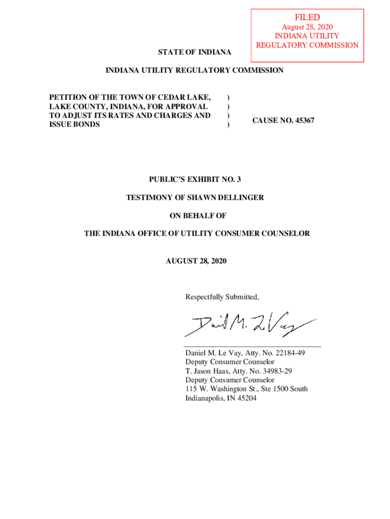 REGULATORY COMMISSIONINDIANA UTILITY REGULATORY COMMISSIONPETITION OF THE TOWN OF CEDAR LAKE,