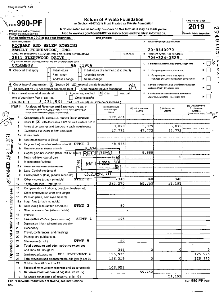 3160 5/05/202o\'\'9 17AM,., Return of Private Foundation\'j_FOrm 990\'PF Go towers,govIForm990PFfor instructions and the latest information., anchor calendar year 2019 or tax year beginning, ending