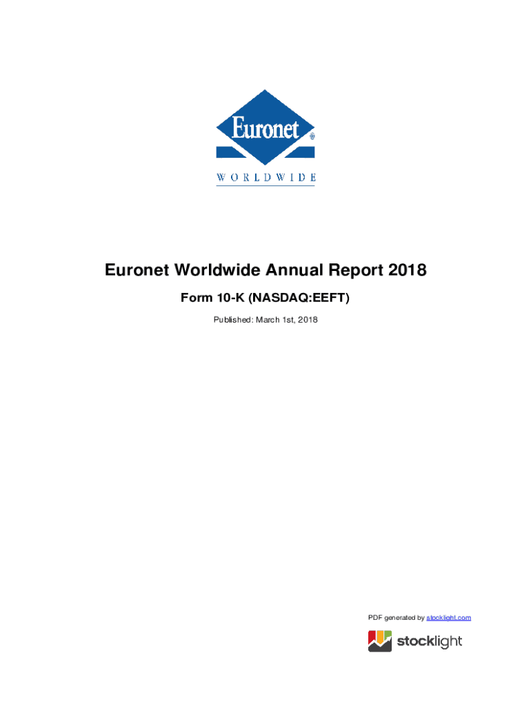 Euro net Worldwide Annual Report 2018 Form 10K (NASDAQ:LEFT) Published: March 1st, 2018PDF generated by stock light. Counted STATES SECURITIES AND EXCHANGE COMMISSION WASHINGTON, D.C. 20549 ___FORM
