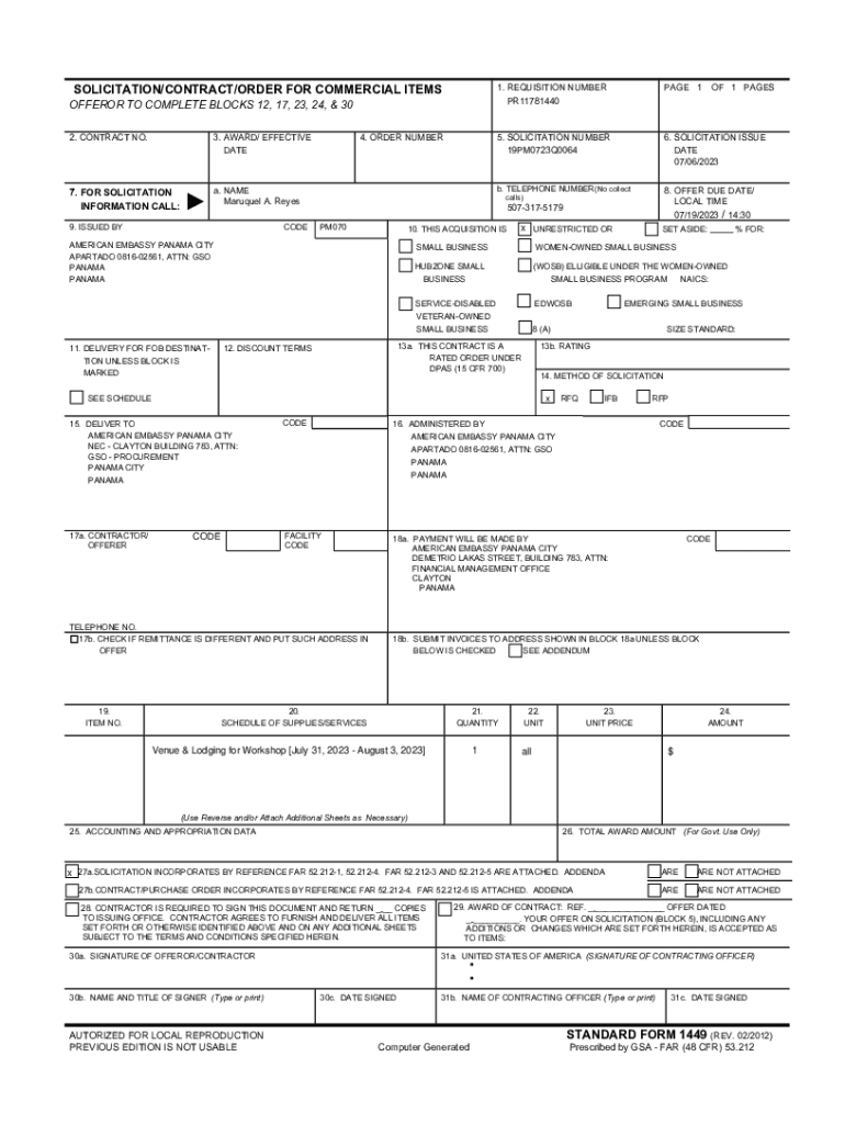 SOLICITATION/CONTRACT/ORDER FOR COMMERCIAL ITEMS OFFER OR TO COMPLETE BLOCKS 12, 17, 23, 24, & 30 2. CONTRACT NO.3. AWARD/ EFFECTIVE DATE7. FOR SOLICITATION INFORMATION CALL:a. NAME Marque A. Reyes9.