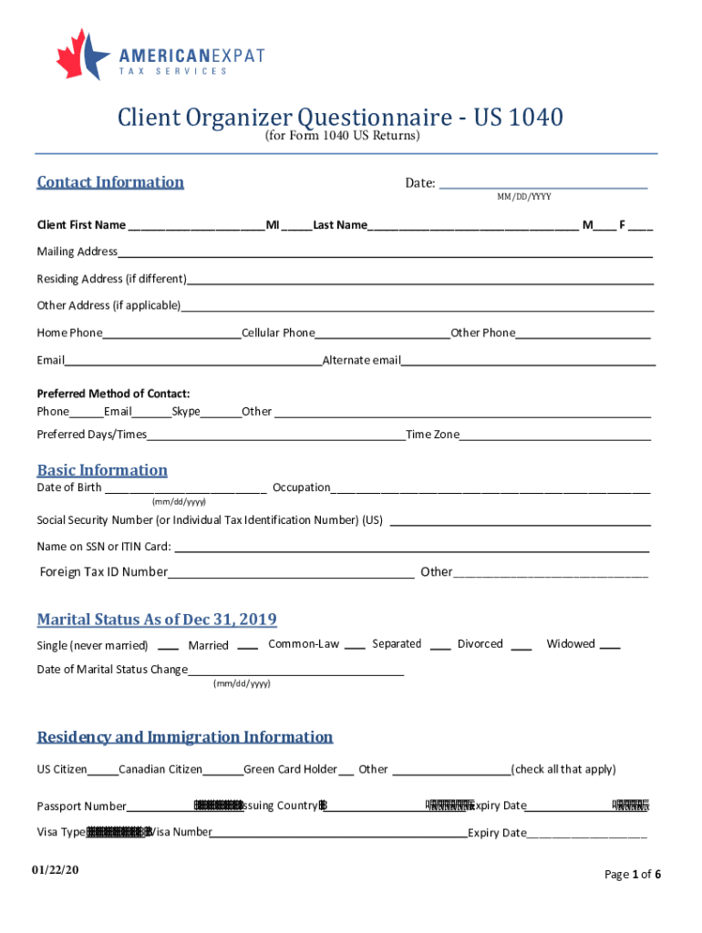 (for Form 1040 US Returns)Contact Informational:MM/DD/YYYYClient First Name ___MI ___Last Name___ M___ F ___