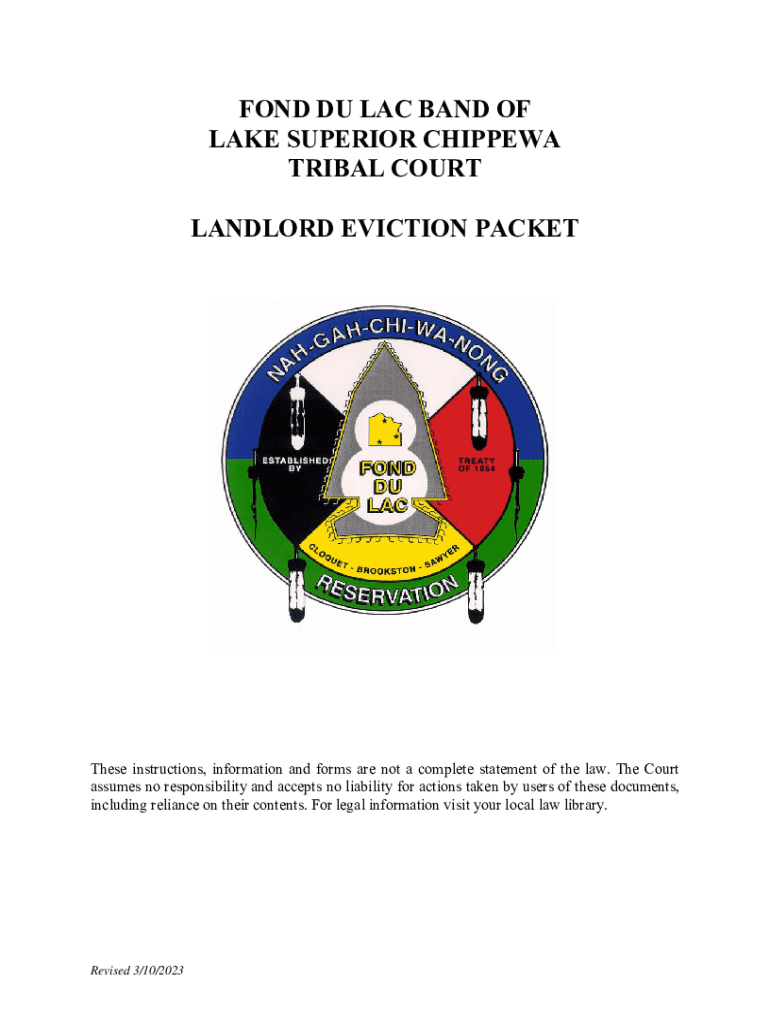 FOND DU LAC BAND OF LAKE SUPERIOR CHIPPEWA TRIBAL COURT LANDLORD EVICTION Packetizes instructions, information and forms are not a complete statement of the law. The Court assumes no responsibility
