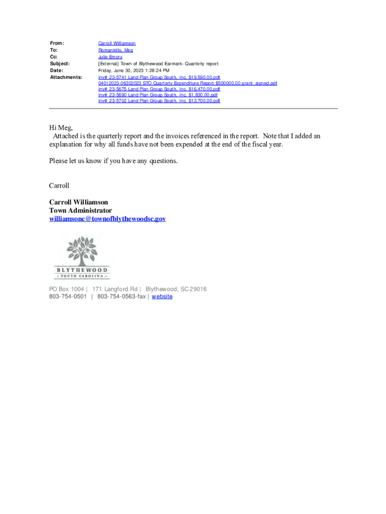 Get the free Hi Meg, Attached is the quarterly report and the invoices ... - treasurer sc