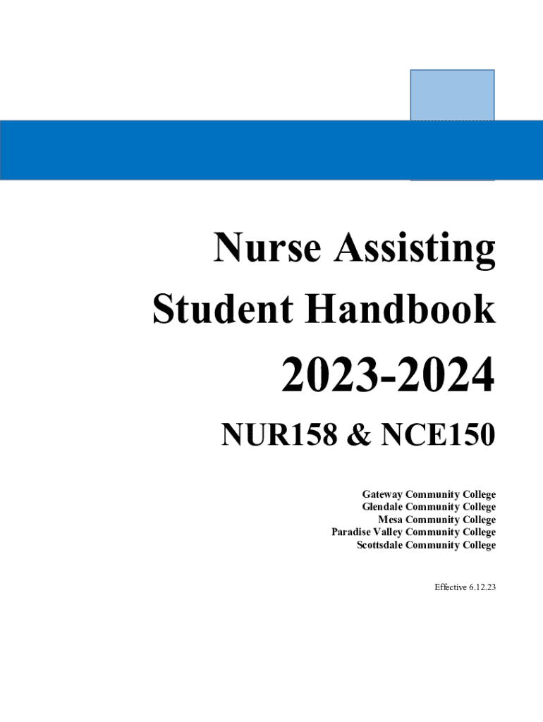Nurse Assisting Student Handbook20232024 NUR158 & NCE150 Gateway Community College Glendale Community College Mesa Community College Paradise Valley Community College Scottsdale Community CollegeEffective