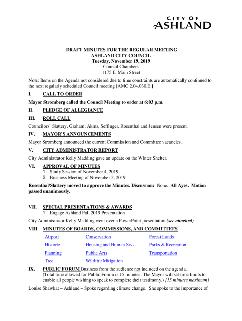 Note: Items on the Agenda not considered due to time constraints are automatically