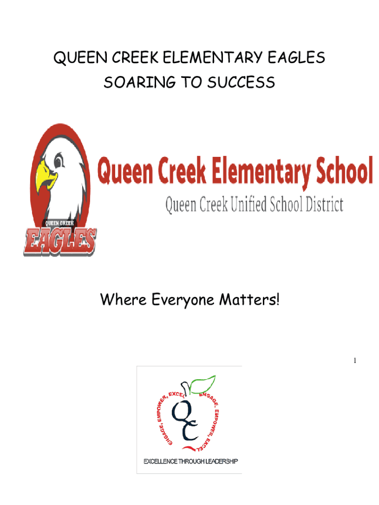 QUEEN CREEK ELEMENTARY EAGLES SOARING TO SUCCESSWhere Everyone Matters!1QCE IS PROUD TO BE AN SCHOOL AND PART OF QC USD, AN RATED DISTRICT!2Queen Creek Elementary Mission Statement: Soaring to Success...