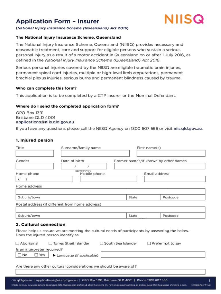 Get the free Application formInsurer - niis qld gov