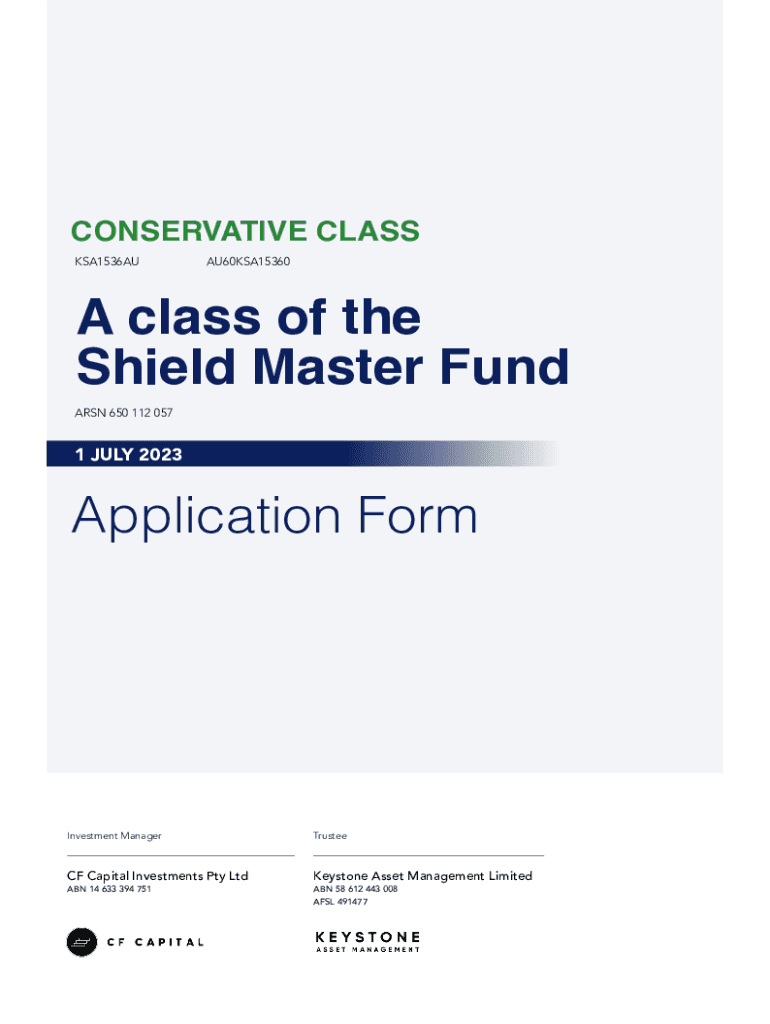 Shield Master Funders 650 112 0571 JULY 2023Application Reinvestment ManagerTrusteeCF Capital Investments Pty Keystone Asset Management Limited