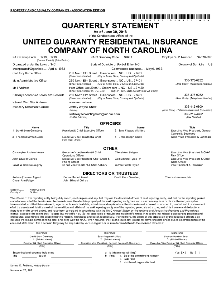 PROPERTY AND CASUALTY COMPANIES ASSOCIATION EDITION×16667201820100102×QUARTERLY STATEMENT As of June 30, 2018, of the Condition and Affairs of reunited GUARANTY RESIDENTIAL INSURANCE COMPANY OF