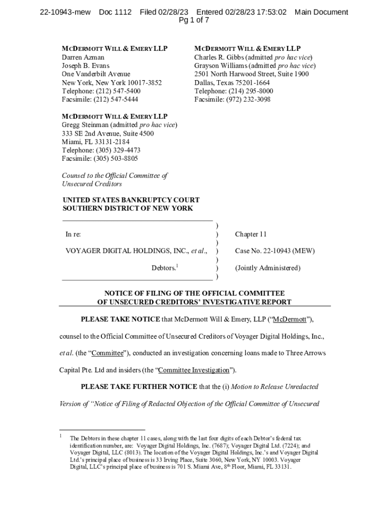 2210943mewDoc 1112Filed 02/28/23 Entered 02/28/23 17:53:02 Pg 1 of 7MCDERMOTT WILL & EMERY LLP Darren Amman Joseph B. Evans One Vanderbilt Avenue New York, New York 100173852 Telephone: (212) 5475400