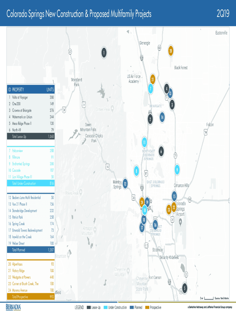 2Q19Colorado Springs New Construction & Proposed Multifamily Projects20121 ID PROPERTY 1 2 3 4 5Volta at Voyager One330 Crown eat Brigade Watermark on Union Mesa Ridge Phase II6 North 49 Total Lease