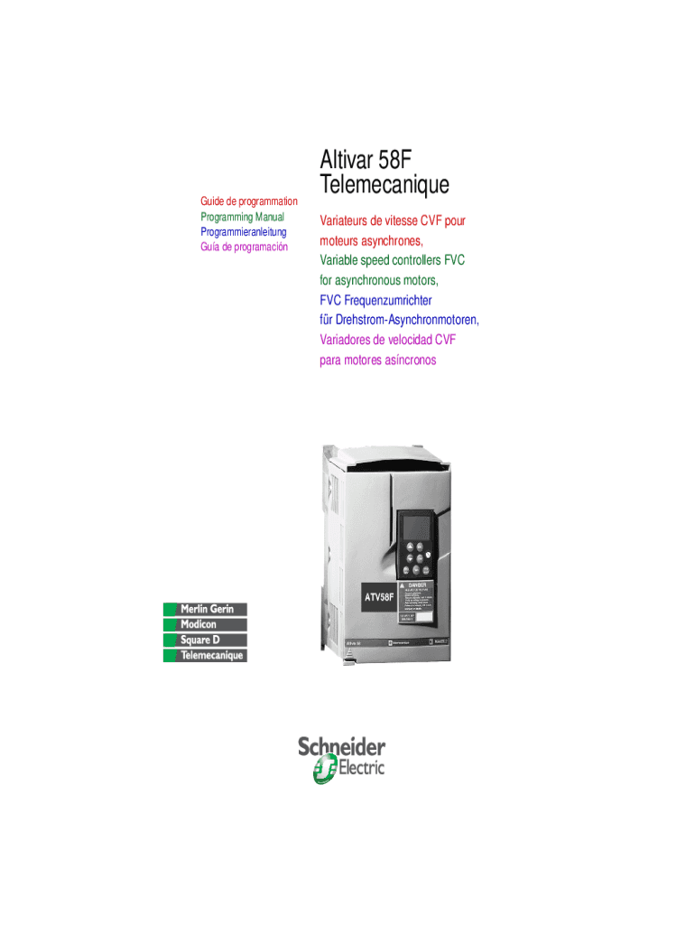 The programming manual atv58f mit must be filed by the manufacturer or distributor of the ATV58F variable frequency drive.