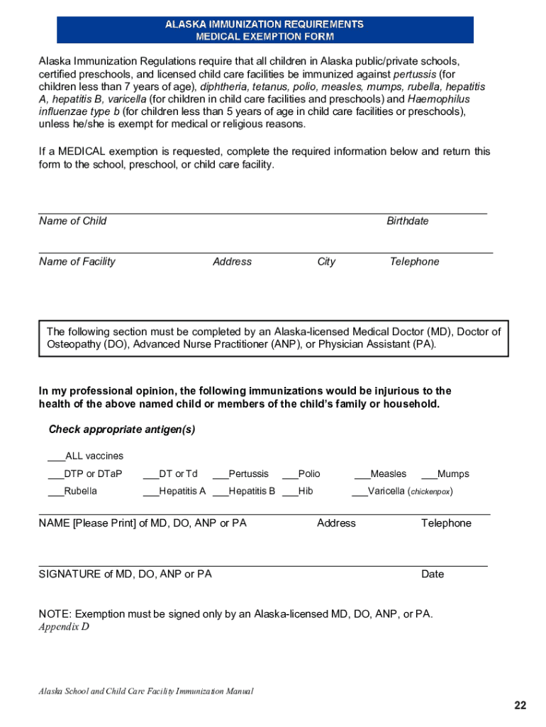 Individuals of all ages, including children and adults, are required to file Alaska immunization requirements medical.