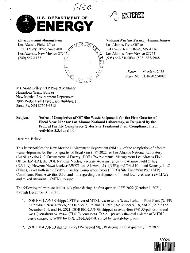 RRC(?) .8E.ENERGY Environmental Management Los Alamos Field Office 1200 Trinity Drive, Suite 400 0 Los Alamos, New Mexico 8754\”, ., (240) 5621122 /\”. International Nuclear Security Administration