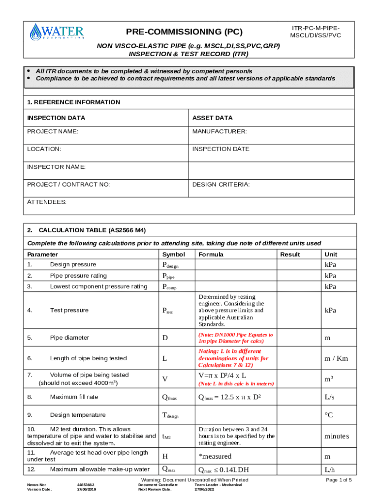 Instructions for the Pipework-Visco-Elastic-Pipe-Pre-Commissioning- ... form