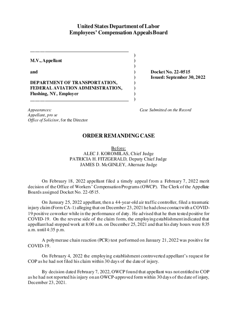 United States Department of Labor Employees Compensation Appeals Board ___ M.V., Appellant and DEPARTMENT OF TRANSPORTATION, FEDERAL AVIATION ADMINISTRATION, Flushing, NY, Employer ___ Appearances: