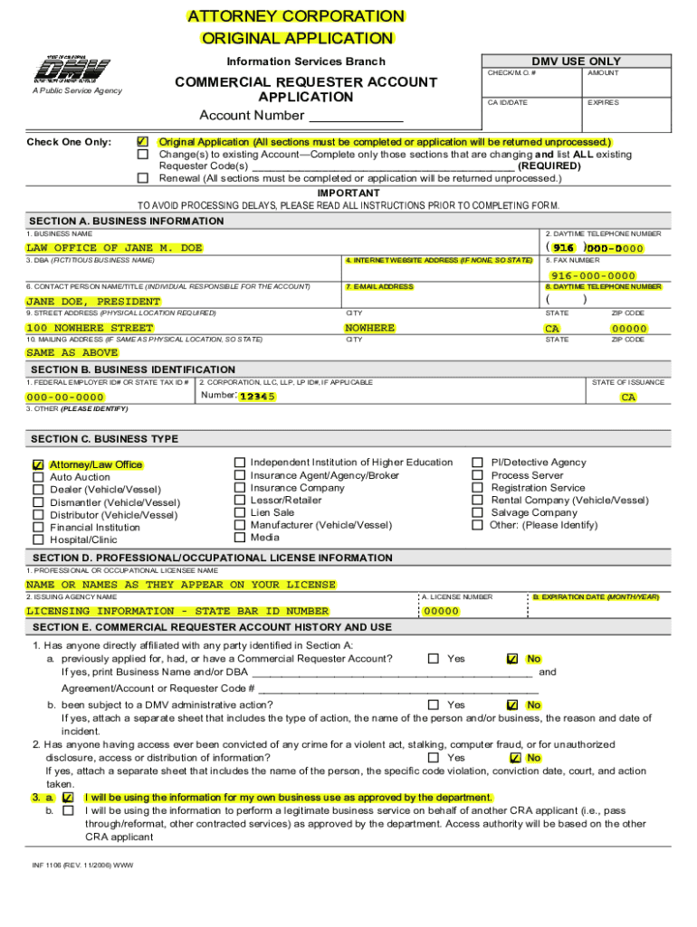 DMV USE ONLYInformation Services BranchCOMMERCIAL REQUESTER ACCOUNT