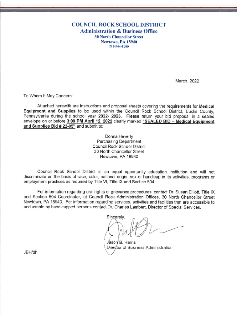 COUNCIL ROCK SCHOOL DISTRICT BID 2205 20222023 MEDICAL SUPPLIES AND EQUIPMENT