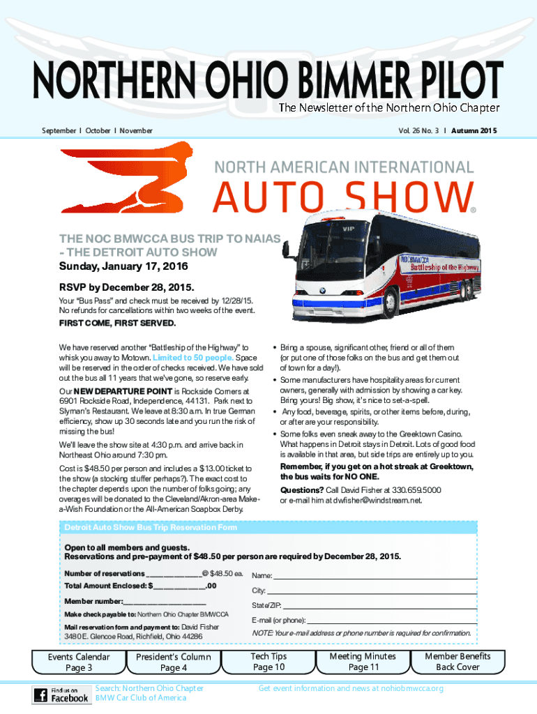 Northern Ohio Dimmer pilot Northern Ohio Chapter BMW CCA I www.nohiobmwcca.orgThe Newsletter of the Northern Ohio Watermark YOUR Calendar. 26 No. 3 l Autumn 2015September l October l November NOC