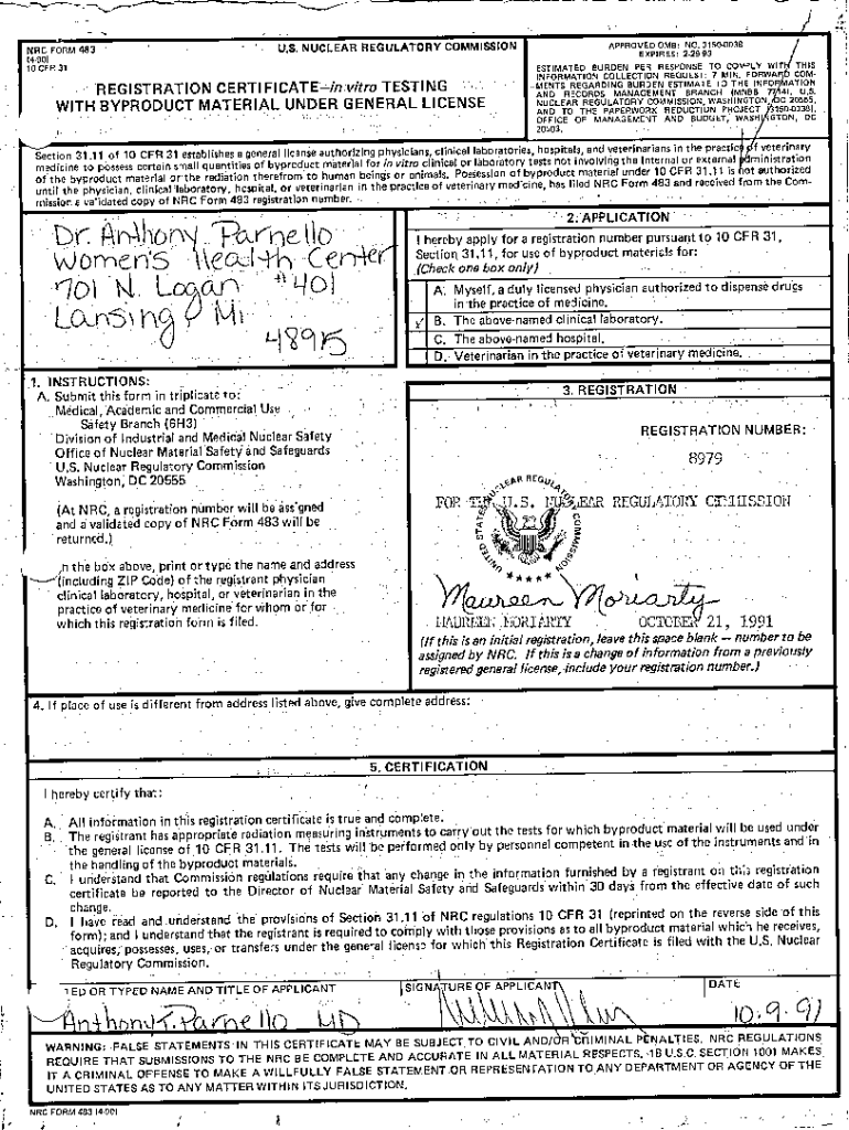 Get the free Registration Certificate for In-Vitro Testing for Anthony ...