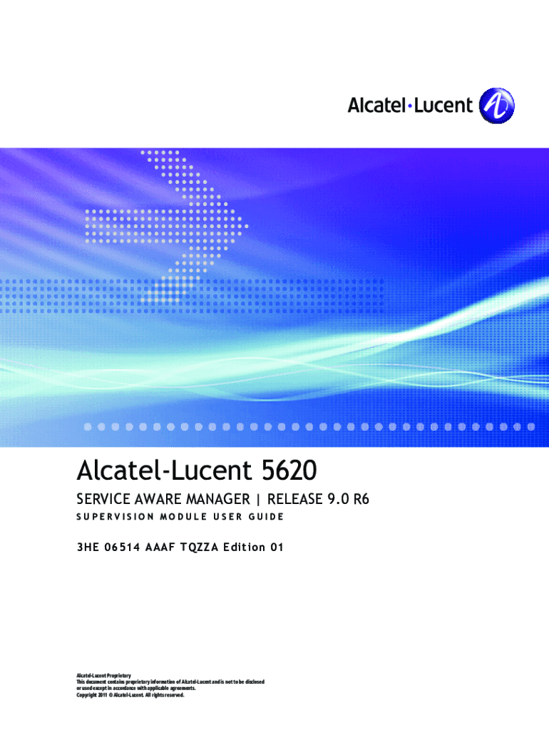 SUPERVISION MODULE USER GUIDEAlcatelLucent 5620 SERVICE AWARE MANAGER | RELEASE 9.0 R6 SUPERVISION MODULE USER GUIDE3HE 06514 AAAF PIZZA Edition 01AlcatelLucent Proprietary This document contains
