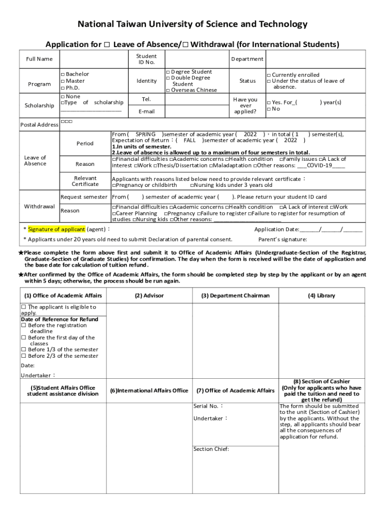 Application for Leave of Absence/ Withdrawal (for International Students)