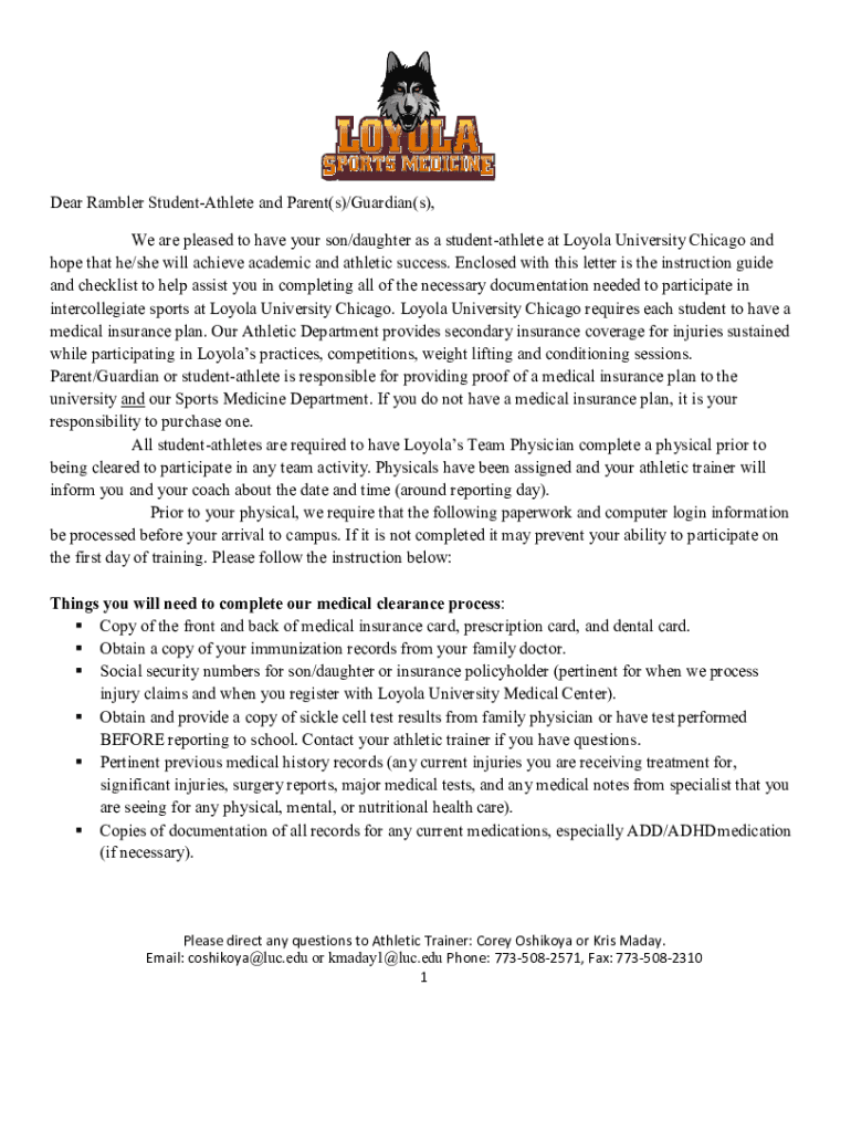 Dear Rambler StudentAthlete and Parent(s)/Guardian(s), We are pleased to have your son/daughter as a student athlete at Loyola University Chicago and hope that he/she will achieve academic and athletic