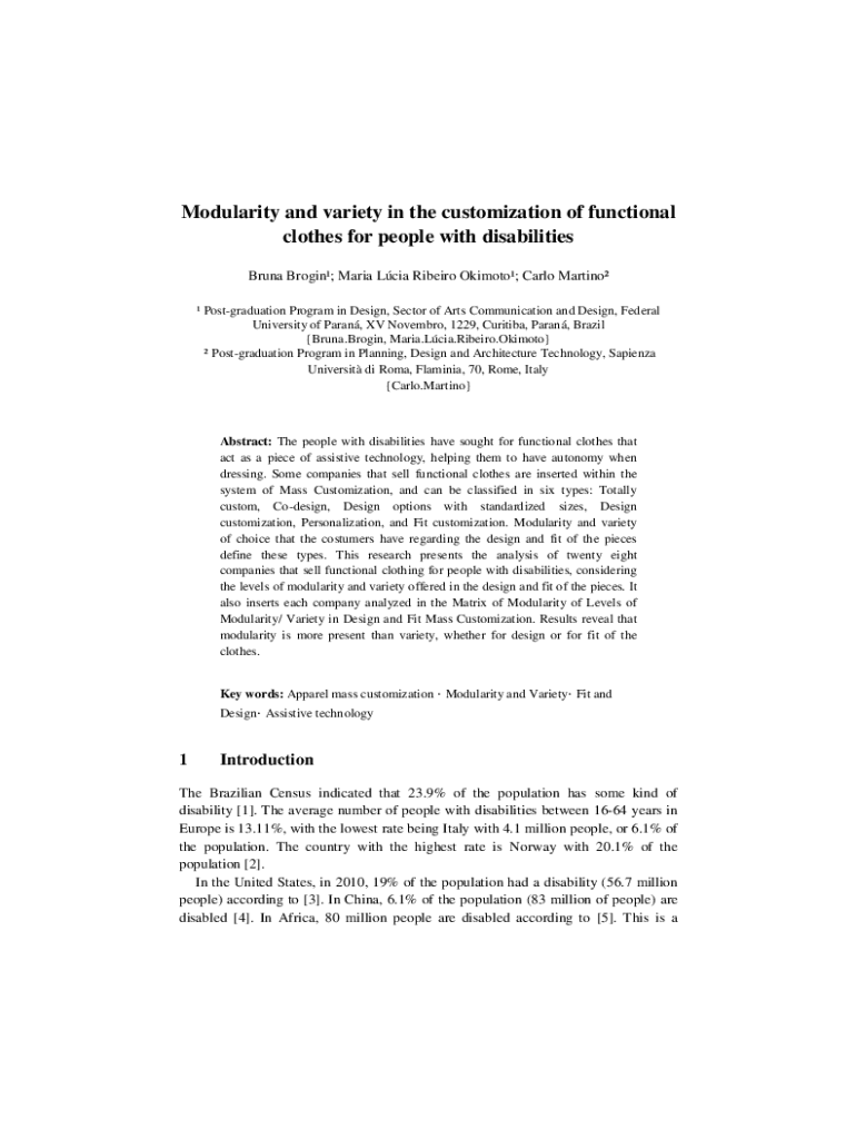 Modularity and variety in the customization of functional clothes for people with disabilities Brunei Brogan; Maria CIA Ribeiro Kimono; Carlo Martin Postgraduation Program in Design, Sector of Arts
