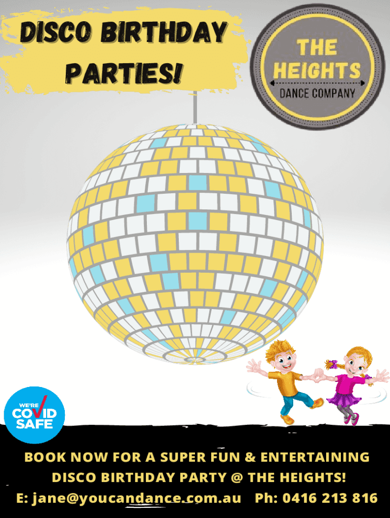DISCO BIRTHDAY PARTIES!BOOK NOW FOR A SUPER FUN & ENTERTAINING DISCO BIRTHDAY PARTY @ THE HEIGHTS! E: jane@youcandance.com.au pH: 0416 213 816LET\'S CELEBRATE!! With over 13 yrs experience providing