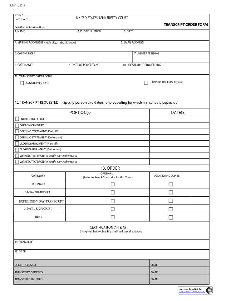 Local Formulated STATES BANKRUPTCY COURTTRANSCRIPT ORDER Formed Instructions on Back: