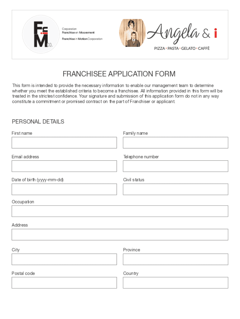 Corporation Franchise en Movement. Franchise in Motion CorporationFRANCHISEE APPLICATION From This form is intended to provide the necessary information to enable our management team to determine