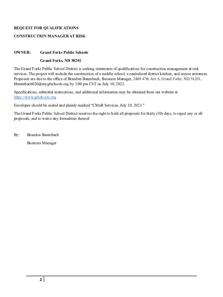 Get the free REQUEST FOR QUALIFICATIONS Construction Manager- ...